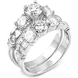 Here are some of the great features of .925 Sterling Silver Wedding Ring Set, Four-Prong Setting on Round Cut Stones, Cubic Zirconia